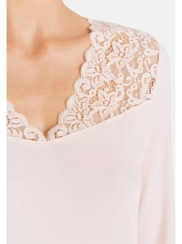 Edles Nachthemd aus der Serie Moments mit üppiger Spitzenverzierung am Dekolleté. Das spürbar hochwertige Material aus weicher, merzerisierter Baumwolle in Interlock-Verarbeitung verspricht einzigartigen Tragekomfort. Der elegante V-Ausschnitt wird mit seinem opulenten, leicht transparenten Spitzenbesatz zum reizvollen Eyecatcher. – Üppige Spitzenverzierung am Ausschnitt – Hochwertige, merzerisierte Baumwolle – 100 cm lang und mit 3/4 ArmGrößenhinweisFällt normal aus
