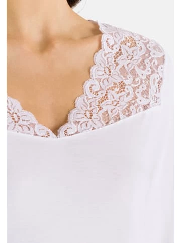 Edles Nachthemd aus der Serie Moments mit üppiger Spitzenverzierung am Dekolleté. Das spürbar hochwertige Material aus weicher, merzerisierter Baumwolle in Interlock-Verarbeitung verspricht einzigartigen Tragekomfort. Der elegante V-Ausschnitt wird mit seinem opulenten, leicht transparenten Spitzenbesatz zum reizvollen Eyecatcher. – Üppige Spitzenverzierung am Ausschnitt – Hochwertige, merzerisierte Baumwolle – 100 cm lang und mit 3/4 ArmGrößenhinweisFällt normal aus