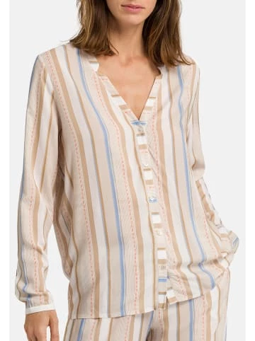 Mit diesem Shirt aus der Sleep & Lounge Serie relaxen Sie stilvoll rund um die Uhr. Das Shirt aus luftig leichter Viskose im frischen Design lässt sich wunderbar mit der passenden Hose kombinieren. Mit praktischer Knopfleiste und tiefem V-Ausschnitt. – Lockerer Schnitt und luftiges Material – Knopfleiste und V-Ausschnitt – Zum selber kombinierenGrößenhinweisFällt normal aus