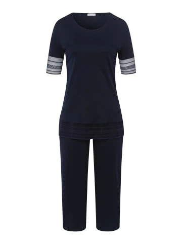Dieser Schlafanzug aus der HANRO Serie Sina bietet tags wie nachts höchsten Wäschekomfort. Er besteht aus einem Schlafshirt mit kurzen Armen und einer 3/4 langen Pyjamahose. An den Ärmeln sorgt Spitze in Tülloptik für einen Hauch von Transparenz. Dank natürlich-lockerer Passform und Rundhalsausschnitt fühlt sich die Nachtwäsche sehr gut an und sieht fantastisch aus. – Weich fließender Interlock aus Produktion in Österreich – Oberteil mit Spitze in Tülloptik am Ärmel – Mittellange Schlafhose mit bequemem Bund – Unser Model ist 180 cm groß und trägt Größe S – Hochwertige VerarbeitungGrößenhinweisXS (Damen)